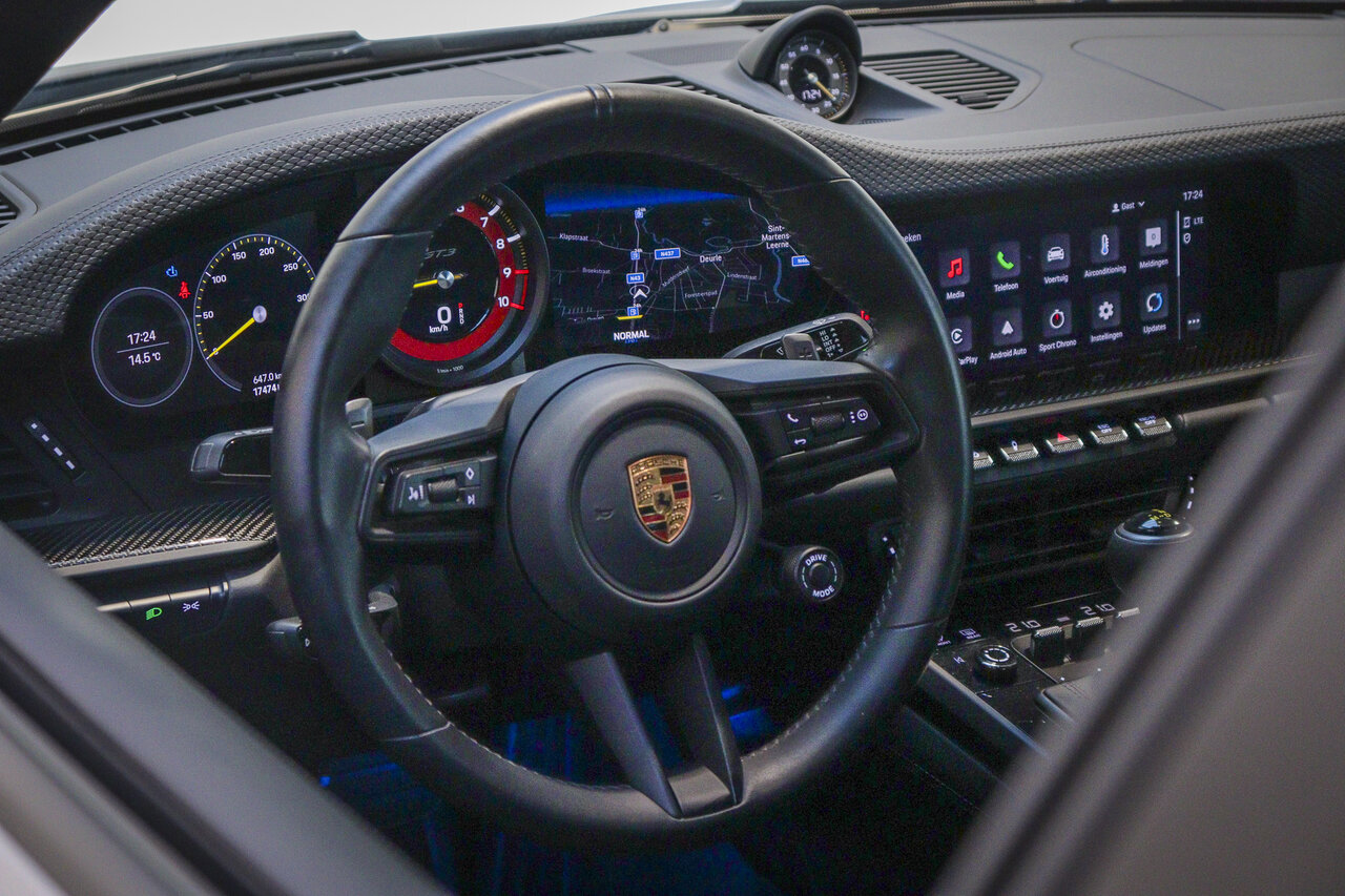 Deze uitzonderlijke Porsche 992 GT3 Touring verkeert in absolute nieuwstaat en werd geleverd aan zijn eerste Belgische eigenaar. Uitgevoerd in een tijdloze metaalkleur met een uiterst sportieve configuratie: het Touring Package in zwart gecombineerd met een hoogwaardig lederen interieur en uitgebreide carbon details. Een meesterlijke combinatie van pure rijbeleving en discrete klasse, klaar voor de echte liefhebber.