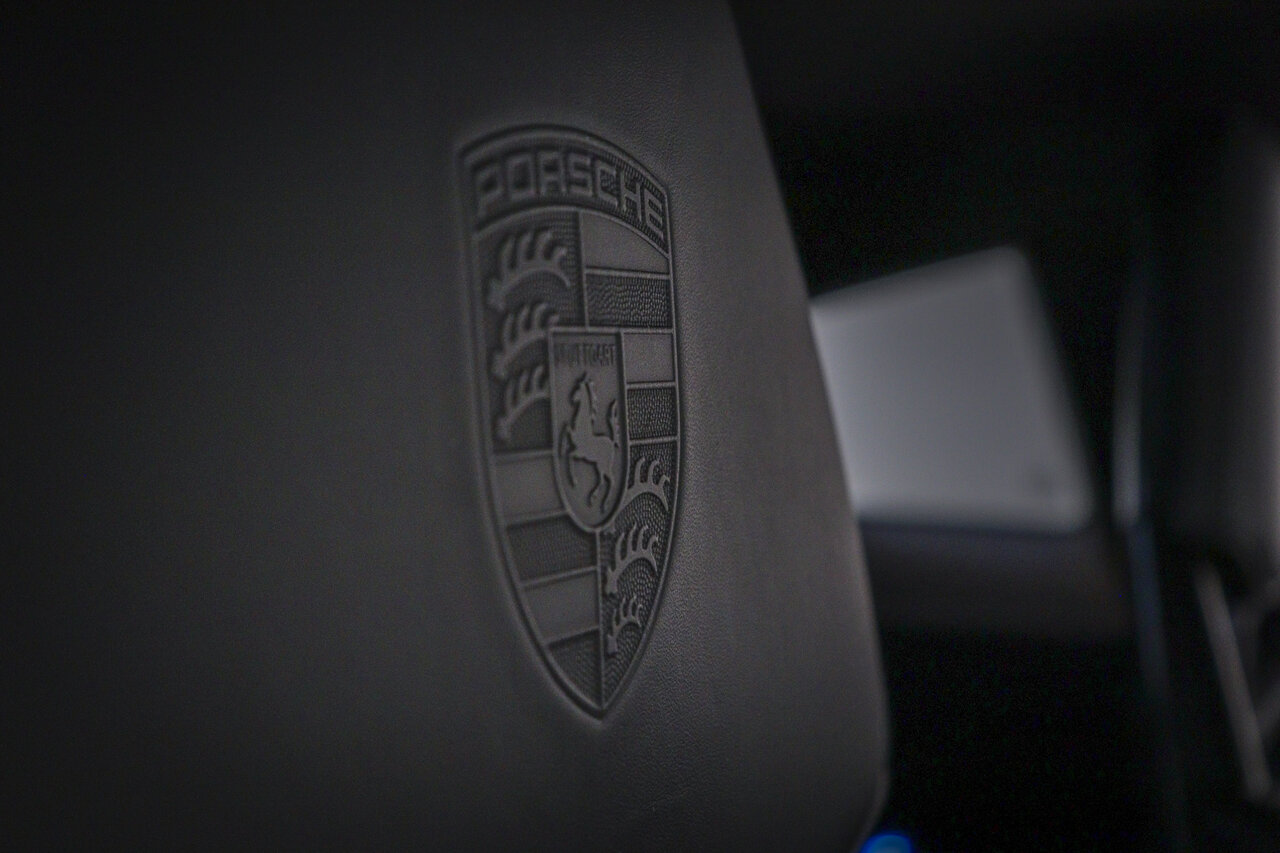 • 6E2 "PORSCHE" logo op middenconsole in leder