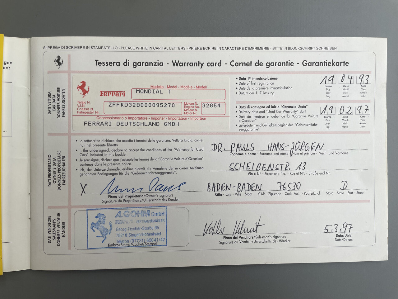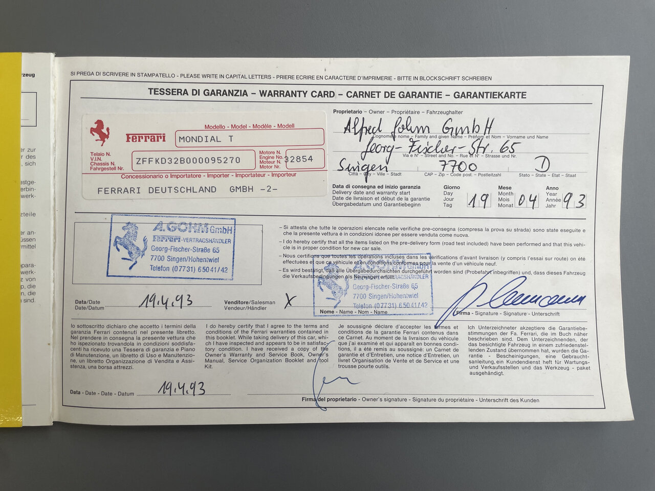 compte du client : une voiture de collectionneur, rare Ferrari Mondial T 3,4